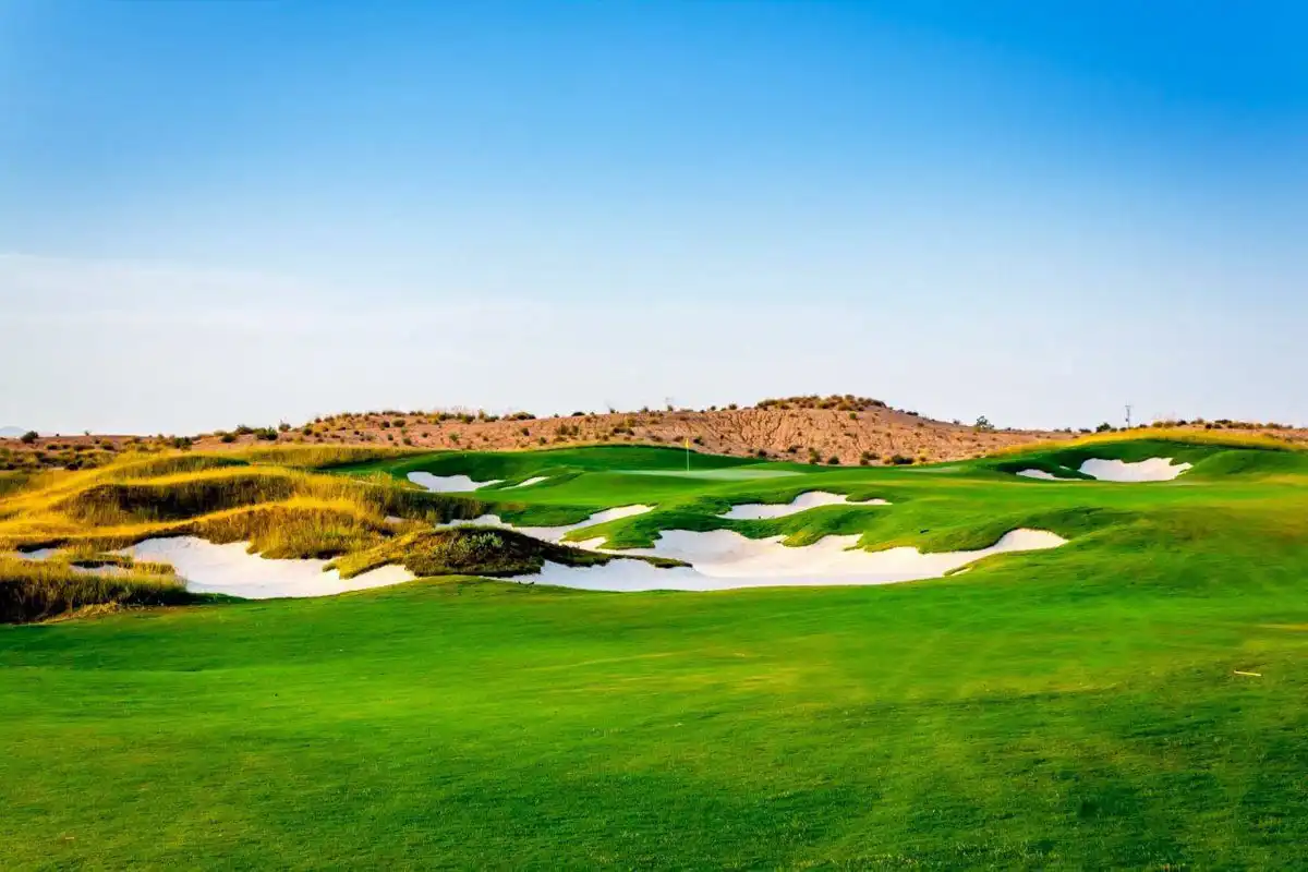 Alhama Signature Golf is located in the province of Murcia, in the town called Alhama. The golf course surface is approximately 96 hectares and its maximum length is 6,884 meters for a par 72 . The green area or playing area is 45 hectares; the rest of the areas are gardens with a variety of indigenous plants of this area.