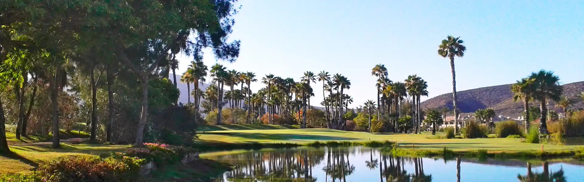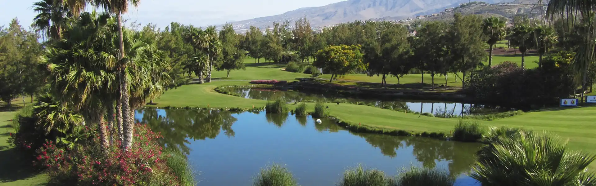 The course which covers over 90 hectares of land is situated in the heart of Playa de Las Americas. One of the most notable features is its streams, ravines and lakes which cross the course. Water comes in to play on the 1st, 2nd, 3rd, 5th 12th, 13th, 17th and 18th holes. The clubhouse overlooks the 18th fairway and green and both the 1st and 10th tees are also located close to the clubhouse.